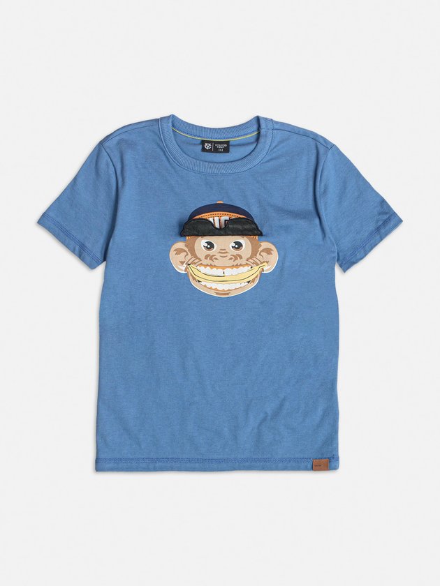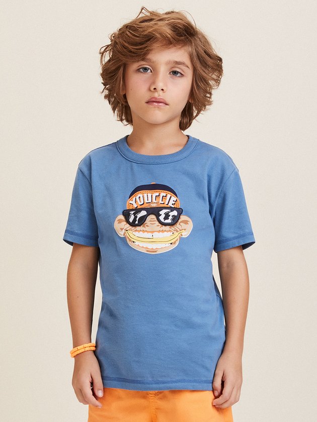Camiseta azul Youccie foi confeccionada em malha com gola em ribana para maior conforto, traz estampa divertida de macaco na parte da frente. Ideal para acompanhar os meninos em suas aventuras diárias. Composição: 100% algodão. Ref.: I1263