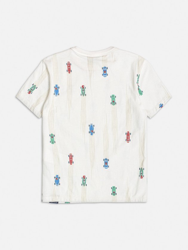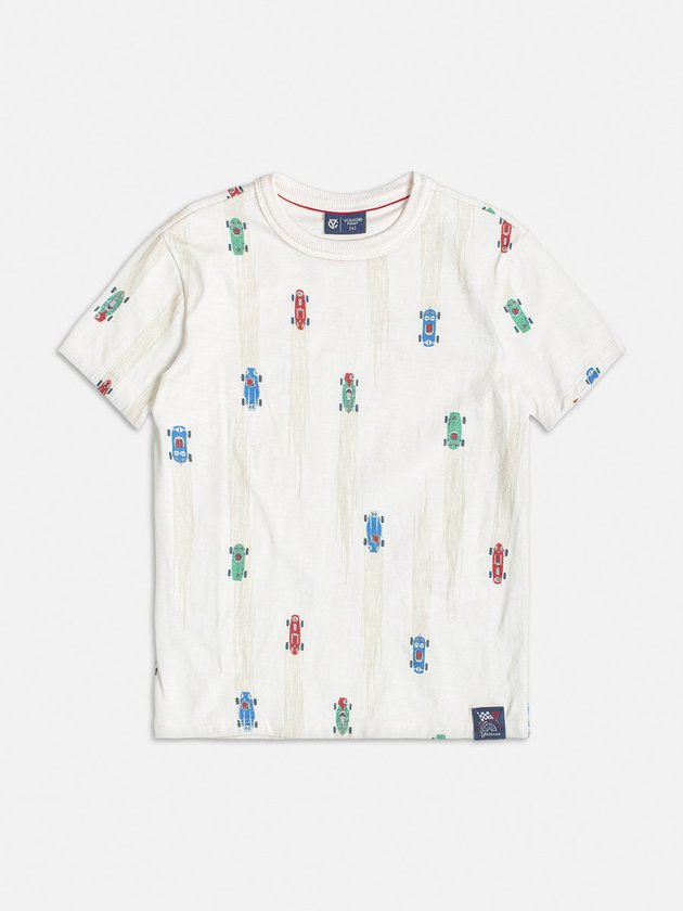 A camiseta off white Youccie é uma escolha versátil para meninos em seu dia a dia. Feita em malha, oferece conforto e estilo. Sua estampa de carros de corrida adiciona um toque de aventura ao visual. Composição: 100% algodão. Ref.: I1202