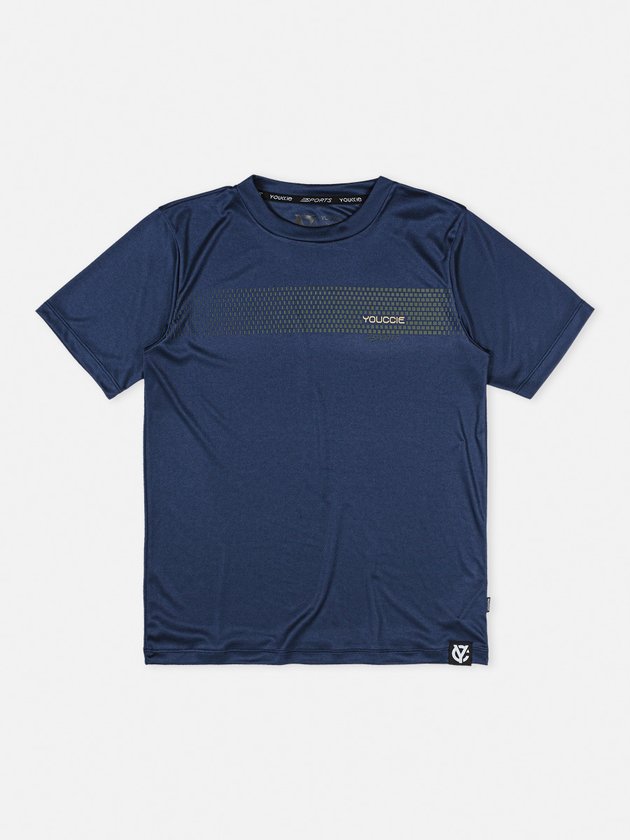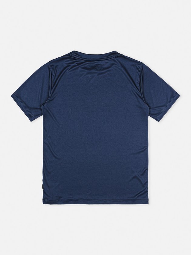 Esta camiseta de menino apresenta malha esportiva na cor marinho, modelagem slim e estampa frontal. A etiqueta decorativa na barra acrescenta um toque extra de estilo e modernidade. Ideal para meninos que gostam de se vestir com conforto em dias de muita diversão. Composição: 100% algodão. Ref.: D1579