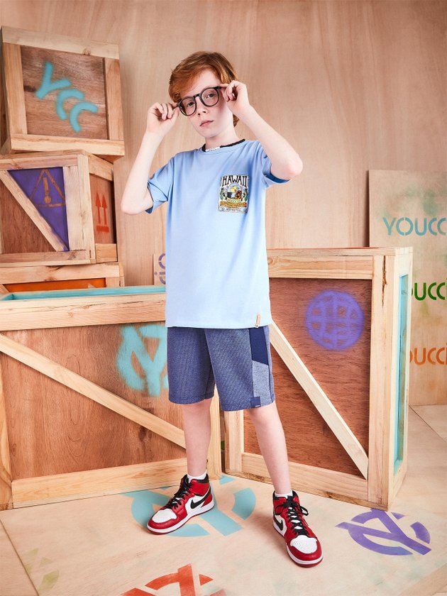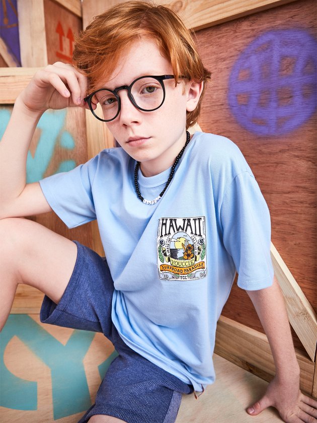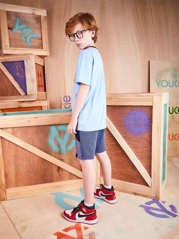 A camiseta Youccie foi confeccionada em malha na cor azul, na parte frontal traz estampa praiana e decote redondo, os meninos vão amar compor looks maneiros para o verão com essa peça. Em seus detalhes ela conta com modelagem básica e etiqueta decorativa na barra. Composição: 100% algodão. Ref.: D1130