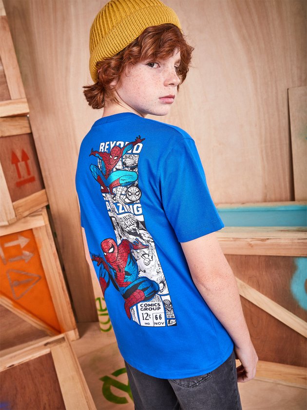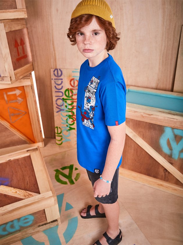 A camiseta infantil Youccie foi desenvolvida em malha com parceria Disney + Youccie que trouxe estampa exclusiva da Marvel com Homem-Aranha. Nos detalhes possui modelagem básica, decote em ribana e duas etiquetas decorativas que deixam a peça mais charmosa.