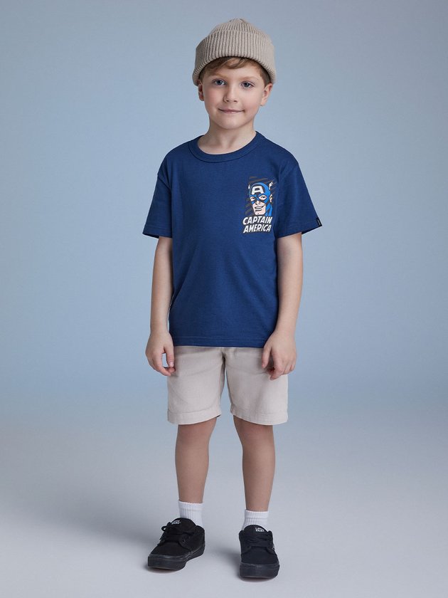 A camiseta azul do Capitão América é a maneira perfeita de mostrar seu amor pelo super-herói favorito da América. A camiseta estampada com o Capitão América é divertida e estilosa, perfeita para o um passeio com os amigos no parque.