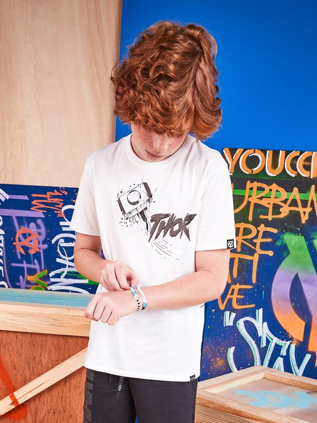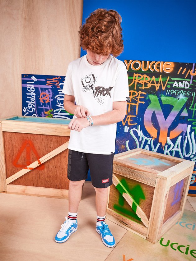 Camiseta Youccie confeccionada em malha com modelagem slim conta com decote em ribana. Possui estampa exclusiva do Thor na parte da frente e costas, conta com etiqueta decorativa na barra, uma peça muito confortável e versátil que não tem como não amar. Composição: 100% Algodão. Ref.: D1338