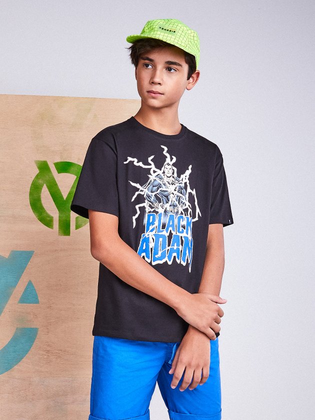 A Camiseta Infantil Youccie foi confeccionada em malha com parceria Disney + Youccie, trouxe uma peça exclusiva do Black Adam ótima para compor looks descolados. Nos detalhes traz modelagem básica e etiqueta decorativa clips na manga. Composição: 100% Algodão. Ref.: D1249