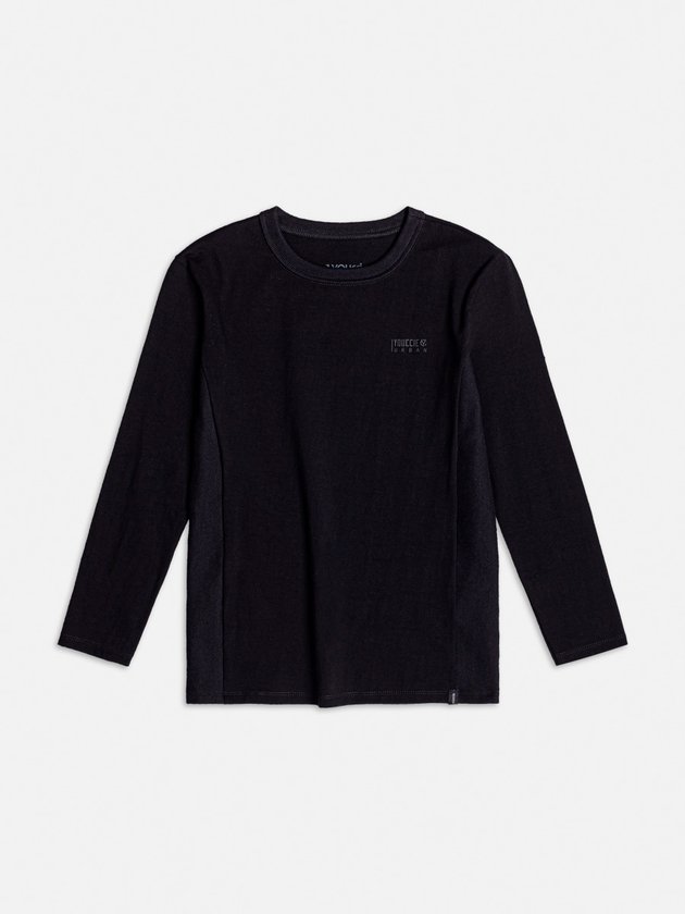 A camiseta manga longa preta Youccie para meninos destaca-se pelo design moderno com recortes texturizados nas laterais, conferindo um toque diferenciado. Fabricada com atenção à qualidade, a peça oferece conforto e estilo. A presença de uma etiqueta decorativa adiciona um elemento de charme exclusivo. Composição: 100% algodão. Ref.: D2040