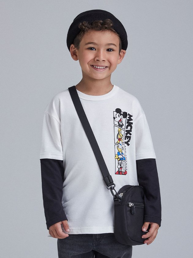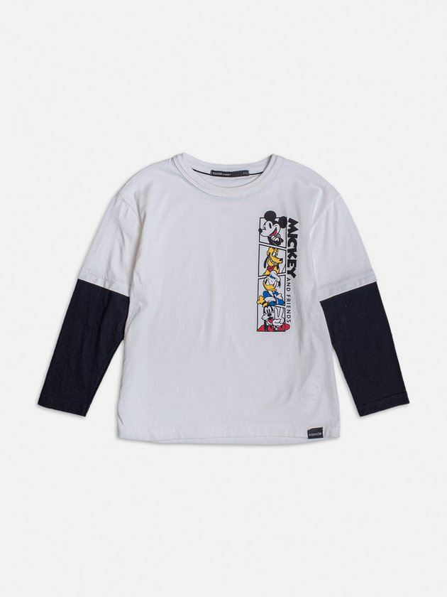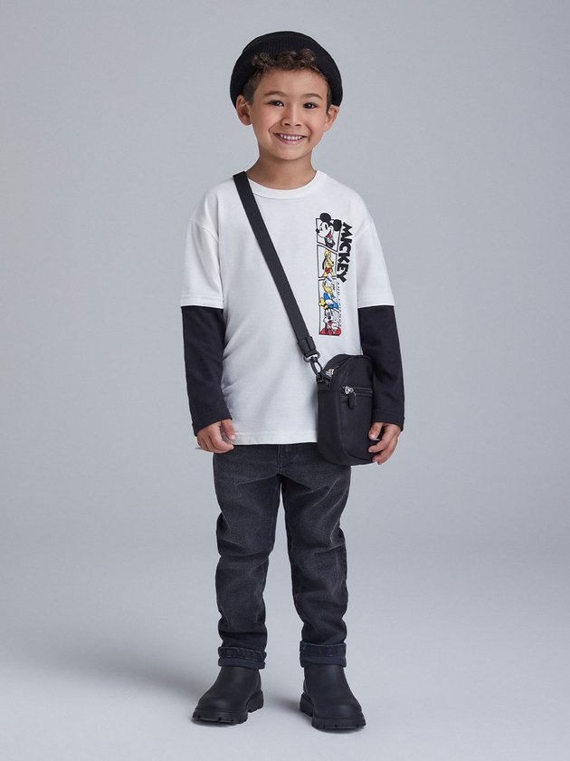 Eleve o estilo do seu pequeno com o conjunto infantil de menino em collab com a Disney. Em preto e branco, a camiseta possui mangas embutidas e estampa do Mickey com seus amigos, Pluto, Pato Donald e Pateta. Ideal para uso no dia a dia e momentos de diversão, os meninos vão adorar o visual descolado e cheio de personalidade. Composição: 100% algodão. Ref.: I1351