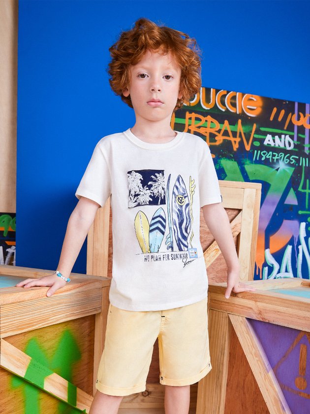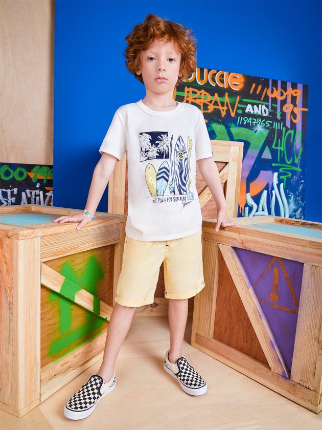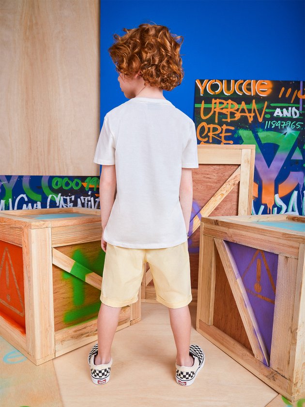 Confeccionada em malha a camiseta de manga curta Youccie é a cara do verão, com estampa praiana na parte frontal ela faz diversas combinações com bermuda jeans ou de tactel. Em seus detalhes ela conta com modelagem slim, decote redondo em ribana e etiquetas decorativas na estampa e manga, os meninos vão amar. Composição: 100% algodão. Ref.: I0730