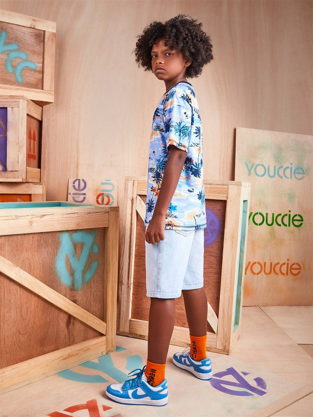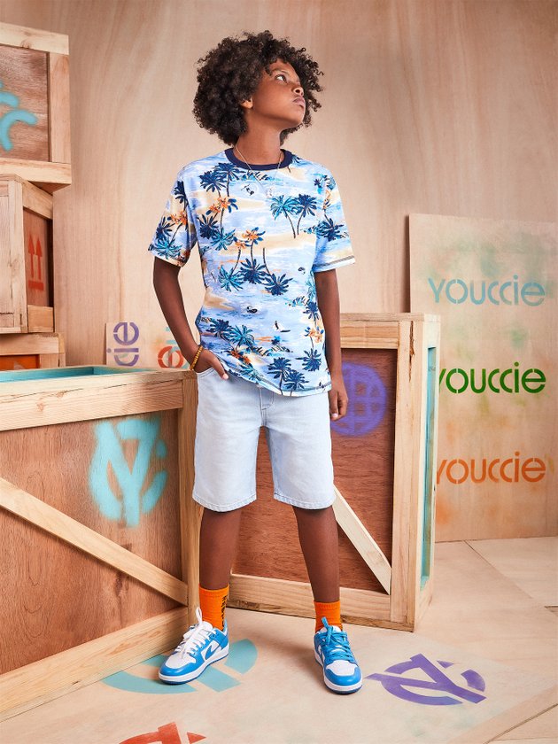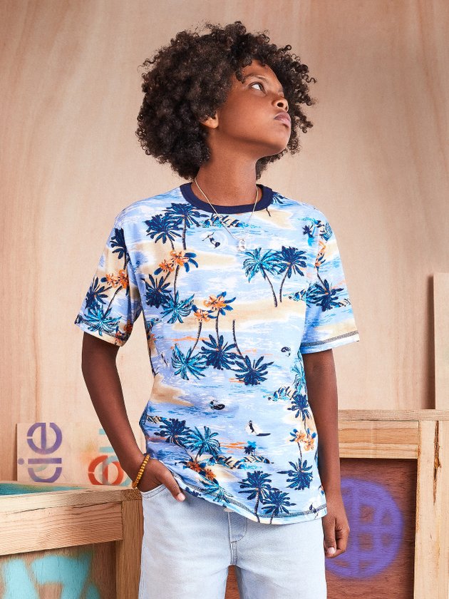 Confeccionada em malha a camiseta de manga curta Youccie traz estampa rotativa com tema de praia, nas estações mais quentes ela fará combinações modernas com bermuda e chinelo deixando eles fresquinhos para se divertir muito. Em seus detalhes a camiseta conta com modelagem soltinha e etiqueta decorativa na manga. Composição: 100% algodão. Ref.: D1129