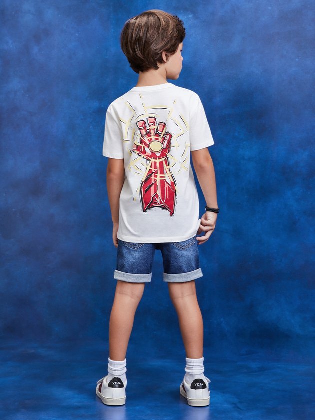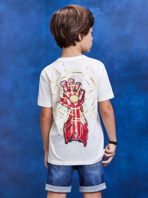 A camiseta off white infantil Youccie é uma peça imperdível para meninos fãs do Homem de Ferro e pelo universo Marvel. Esta camiseta é confeccionada em malha, garantindo conforto e estilo, a estampa adiciona um toque de aventura ao visual dos pequenos. Composição: 100% algodão. Ref.: I1300